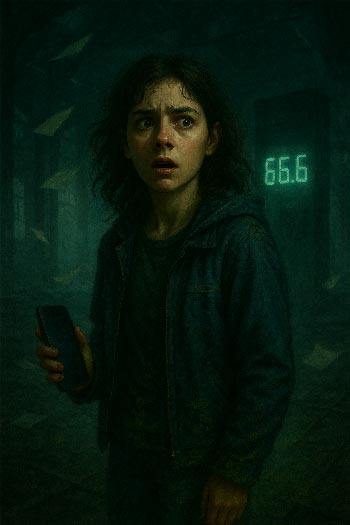 Lá dentro, ouviu risos abafados. E uma frase em língua estranha — consoantes secas, sibilos curtos. Logo depois, a luz piscou. Um vento frio atravessou o galpão. Os monitores pularam de 60 hertz para 66,6. O visor do celular dela embaçou por dentro.