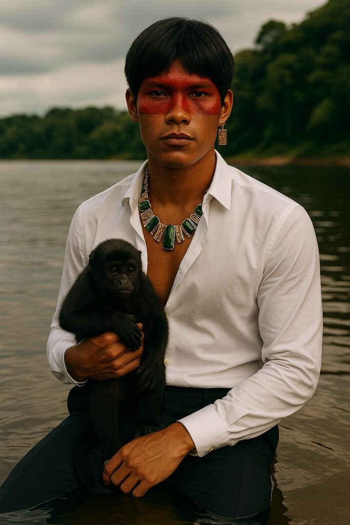 Nos olhos de quem carrega raízes, a floresta se reflete. Por isso, o ensaio também é memória, identidade e permanência.